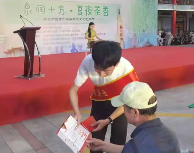 8月19日活动当天,街道办事处联合民生银行、农商银行走进商圈,开展多种形式的宣传工作。借助茶叶市场消夏晚会向商户宣传信用知识,营造“学征信、懂征信、用征信”的良好社会氛围。引导商家依法依规维护自身信用信息,在经营活动中更加重视个人、企业信用行为的管理,增强防范金融风险能力。
