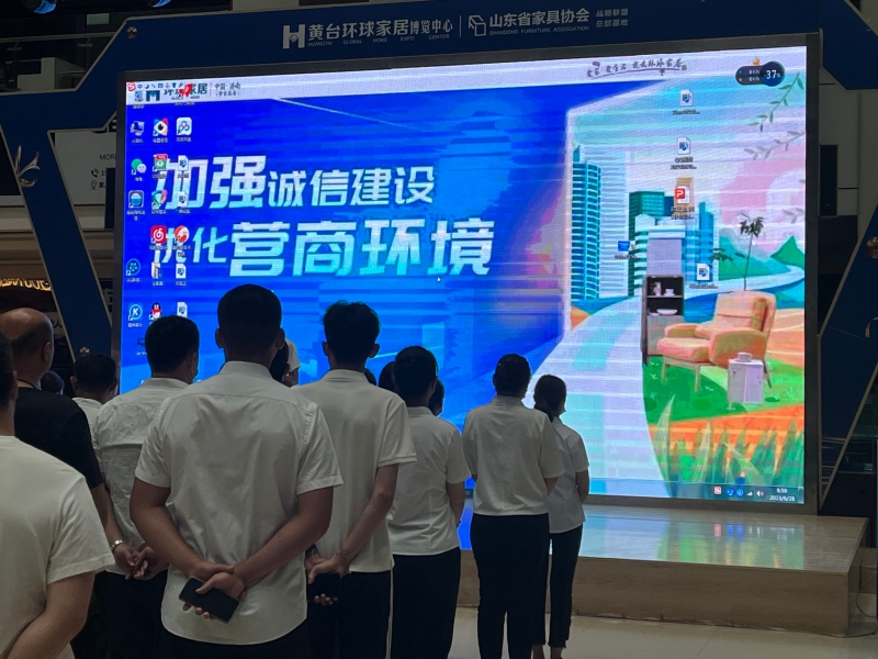 宣传活动在黄台环球家居博览中心举行,工作人员通过在大屏幕展示诚信宣传资料,宣讲信用知识等形式,呼吁大家切实做到诚信经营,营造优良的营商环境。