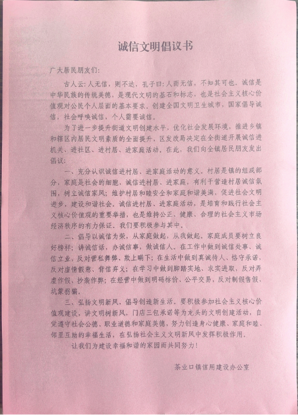 下一步,茶业口镇将持续开展形式多样的信用宣传活动,推动诚信文化融入日常生活,为打造“诚信茶业口镇”奠定坚实基础。