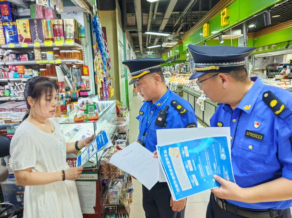 历城区综合行政执法局全福中队工作人员在全福生活广场,与广场内立健药店、老李美食屋等多家商户和居民进行亲切互动,鼓励摊主诚信经营,并结合实际生活场景,深入浅出地讲述失信行为可能带来的严重后果,进一步加深商户和居民的诚信意识,引导商户、居民从身边小事做起,从自身做起,将诚信意识融入到日常生活的一言一行之中,积极投身诚信实践,努力成为“知信、用信、守信”的文明践行者。