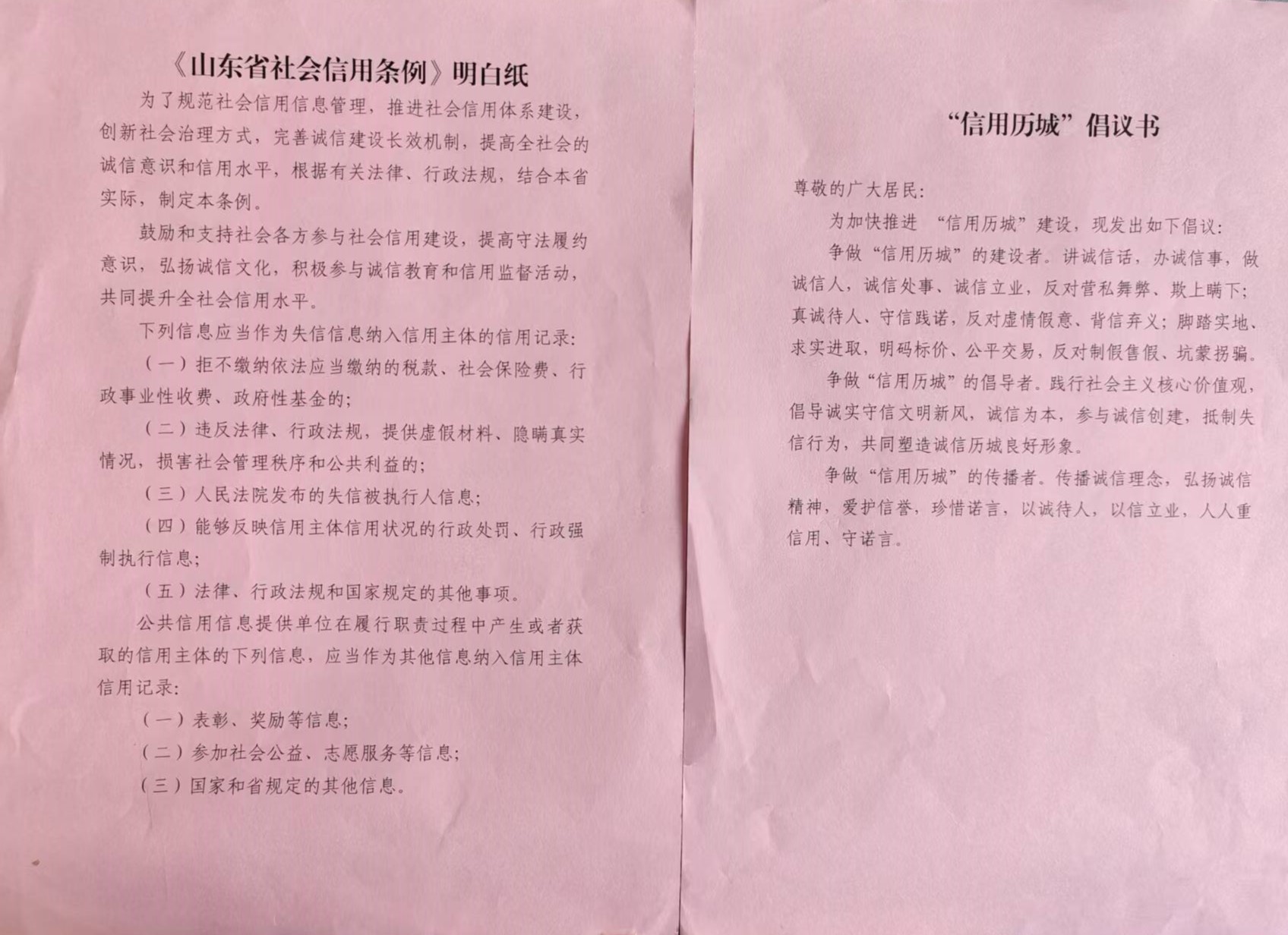 此次宣传活动成效显著,工作人员通过发放讲解“信用历城”倡议书、《山东省社会信用条例》明白纸以及“信易贷”平台宣传单等宣传资料,使诚信意识更深入人心。本次“诚信宣传活动”共发放诚信宣传资料60余份,得到了社区居民和商户的高度认可与积极响应。许多商户和居民表示,通过参与此次活动,深刻认识到诚信与每个人的切身利益息息相关,今后将更加注重自身诚信行为的养成,以实际行动传递和弘扬诚信正能量。