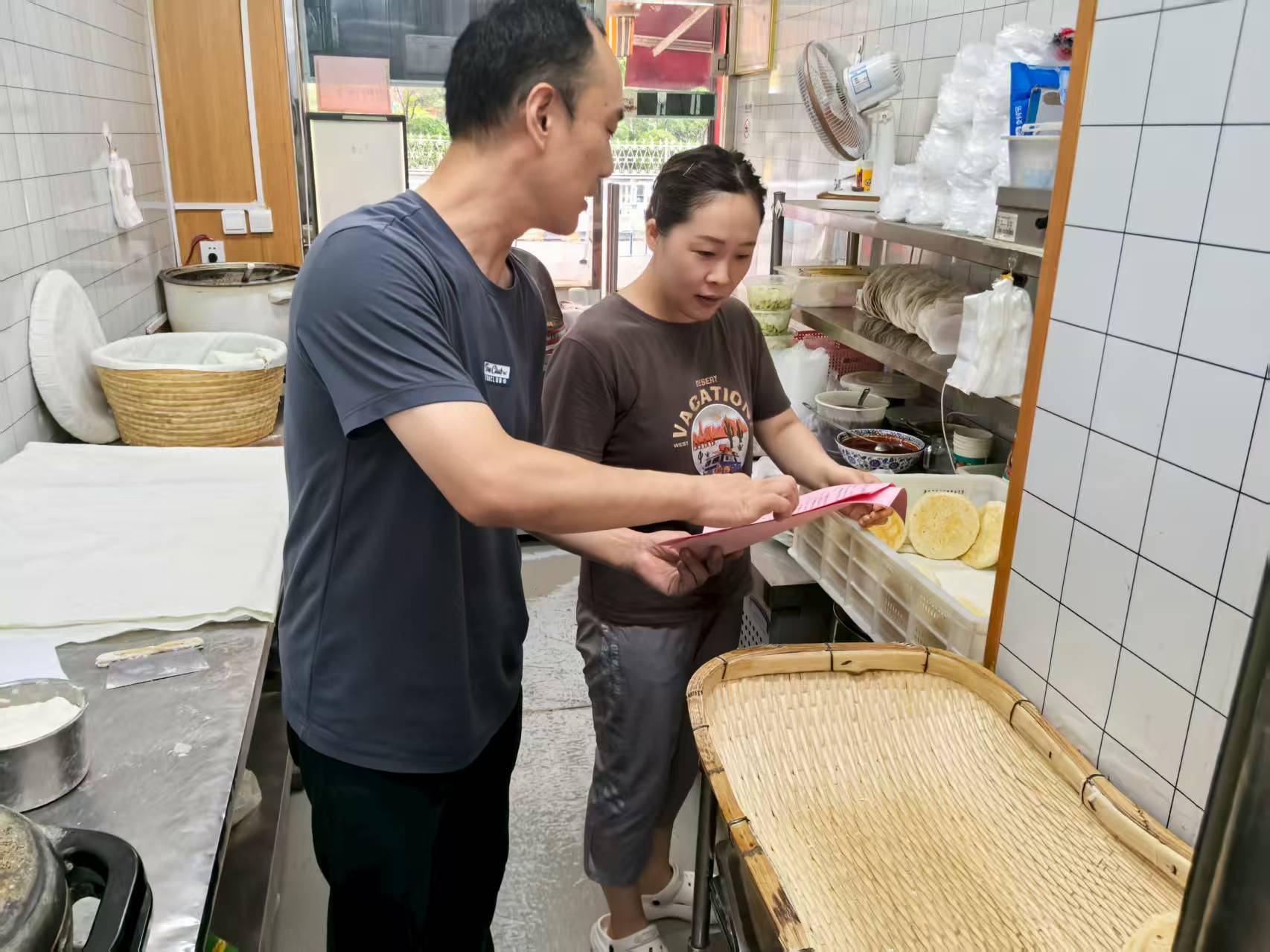 活动当天,济安社区工作人员与志愿者先后来到辖区聚家乐超市、诗歌便利店、杨记饼屋、肉夹馍凉皮、南京小笼包等商铺。