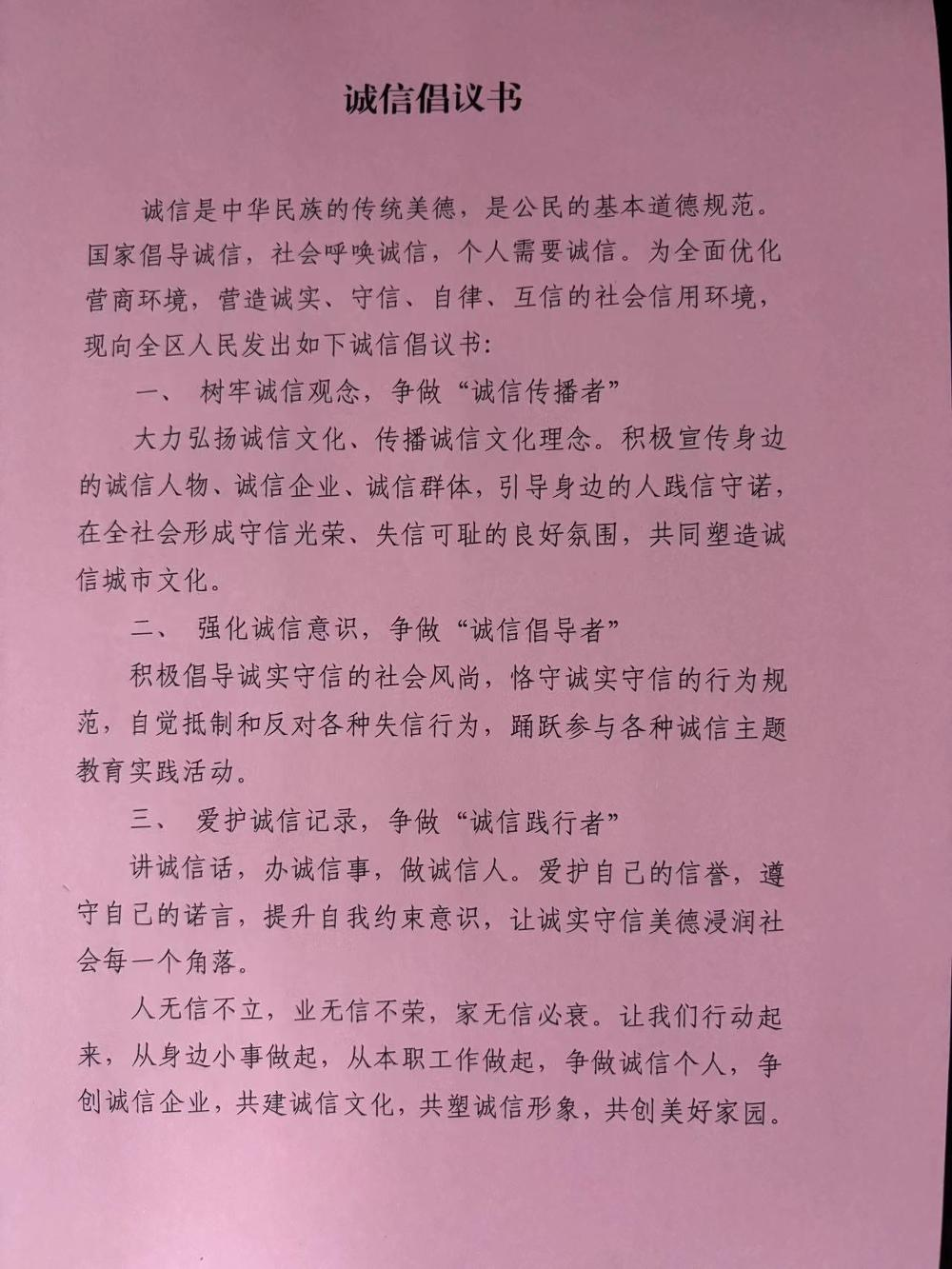 政务诚信是社会信用体系建设的核心,是优化营商环境、提升政府公信力的关键。为深入贯彻落实国家关于加强政务诚信建设的决策部署,进一步提升机关工作人员的诚信意识和服务水平,营造风清气正的政务环境,9月5日,钢城区贸促会机关在单位内部精心组织开展了一系列面向全体干部职工的政务诚信教育宣传活动,取得了良好成效。