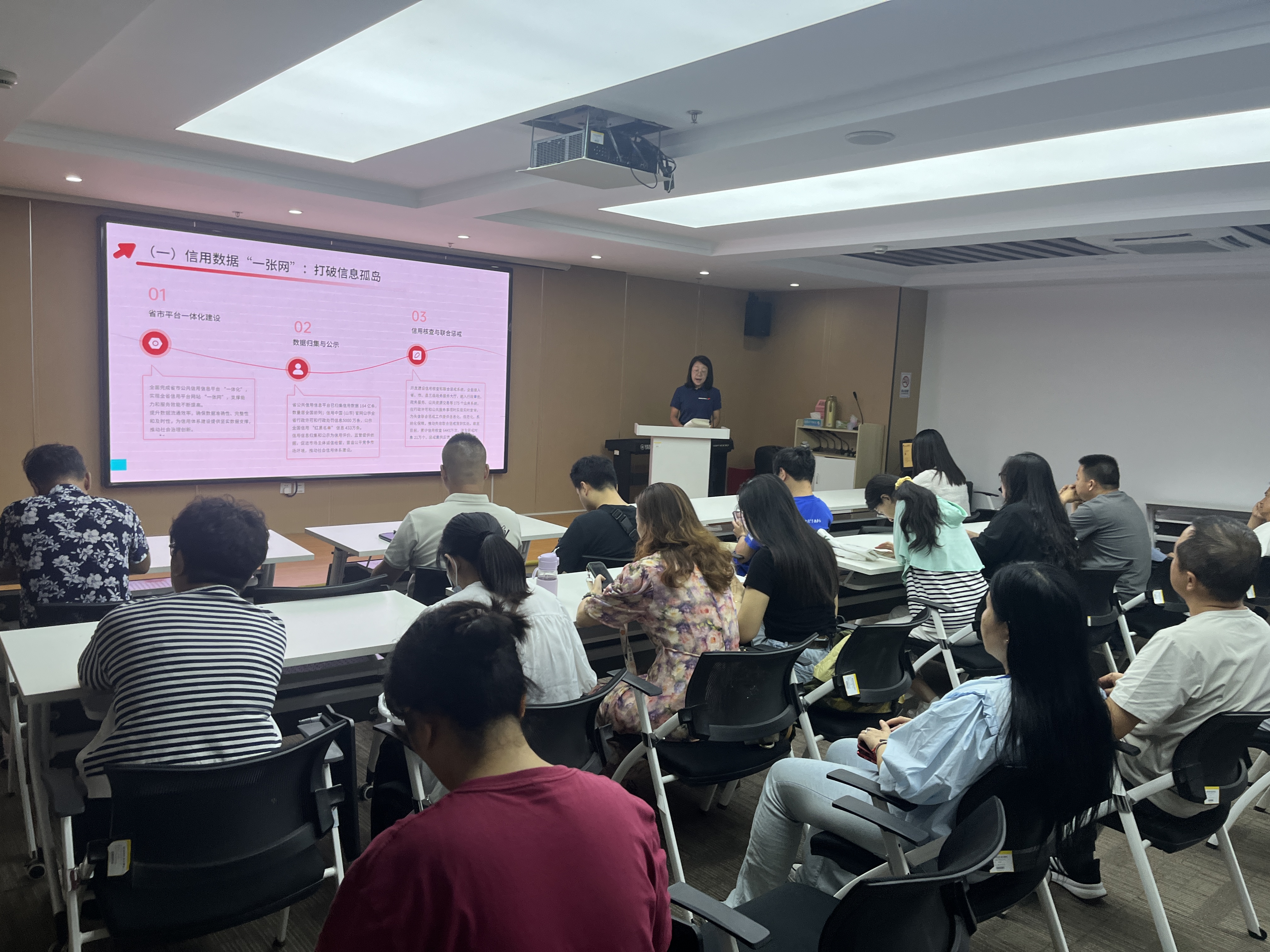 为加快推进历下区社会信用体系建设工作,在社区树立诚实守信意识,助力营商环境优化,塑造“信用历下”良好形象,9月10日,历下区发改局“信用”为纽带、以“志愿”为载体,邀请省社会信用中心“信益行”青年志愿者服务队走进社区,开展以“以诚相伴 与信同行”信用进社区系列活动(第二场),为社区工作人员讲授信用知识,来自两个街道12个社区的17名工作人员参加了活动。