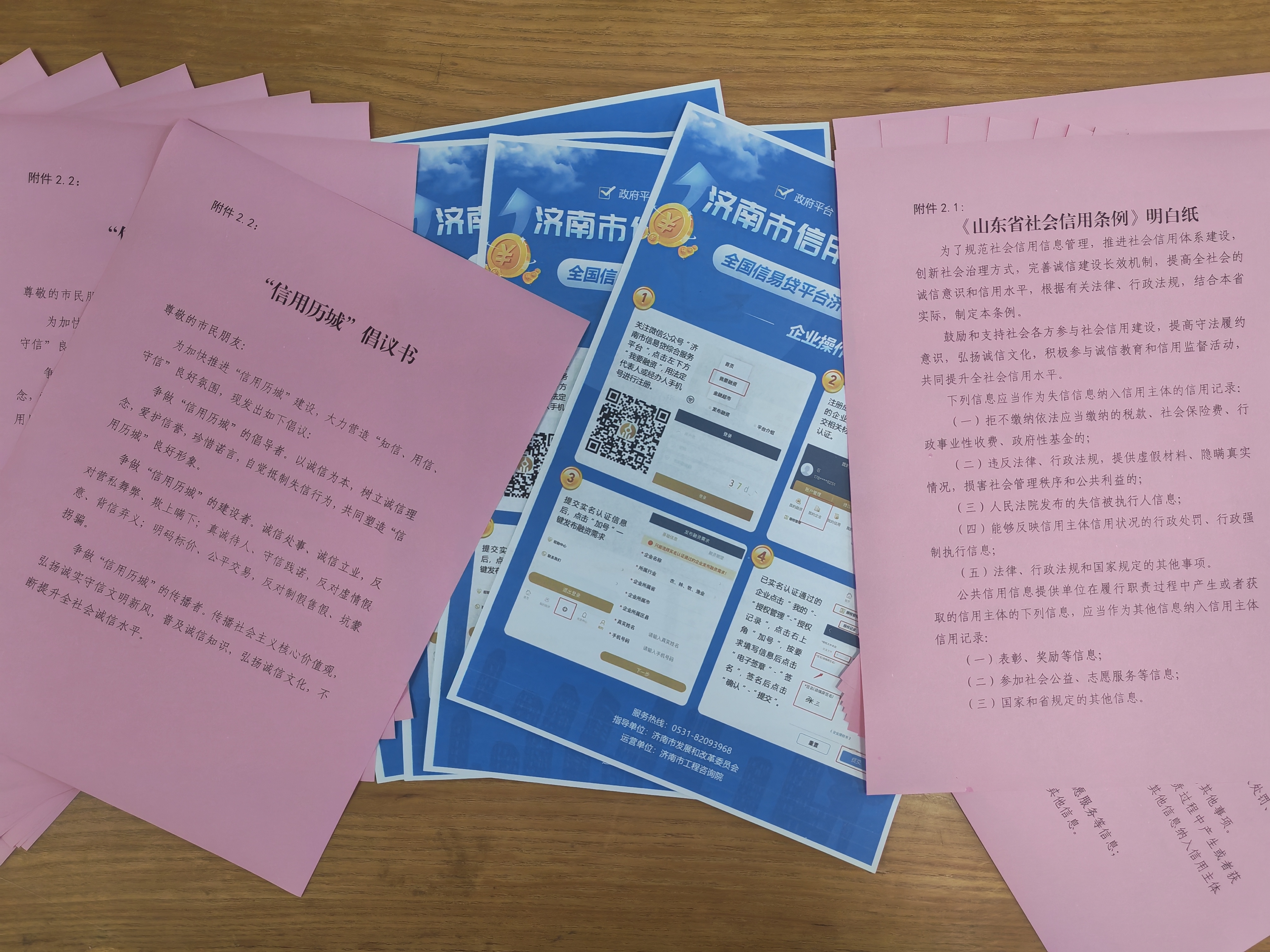 本次宣传活动发放《山东省社会信用条例》明白纸50份、“信用历城”倡议书50份、“信易贷”平台宣传单页30份,共计130份宣传材料。有效普及了社会信用体系建设相关政策知识,各商户在活动中承诺将遵守《山东省社会信用条例》,不制假售假、不虚假宣传、不拖延售后;不少市民反馈以后会更注意诚实守信。此次活动不仅为商户筑牢诚信经营“防火墙”,也让诚信理念深入市民日常生活,为“信用历城”建设营造共同参与的积极氛围。