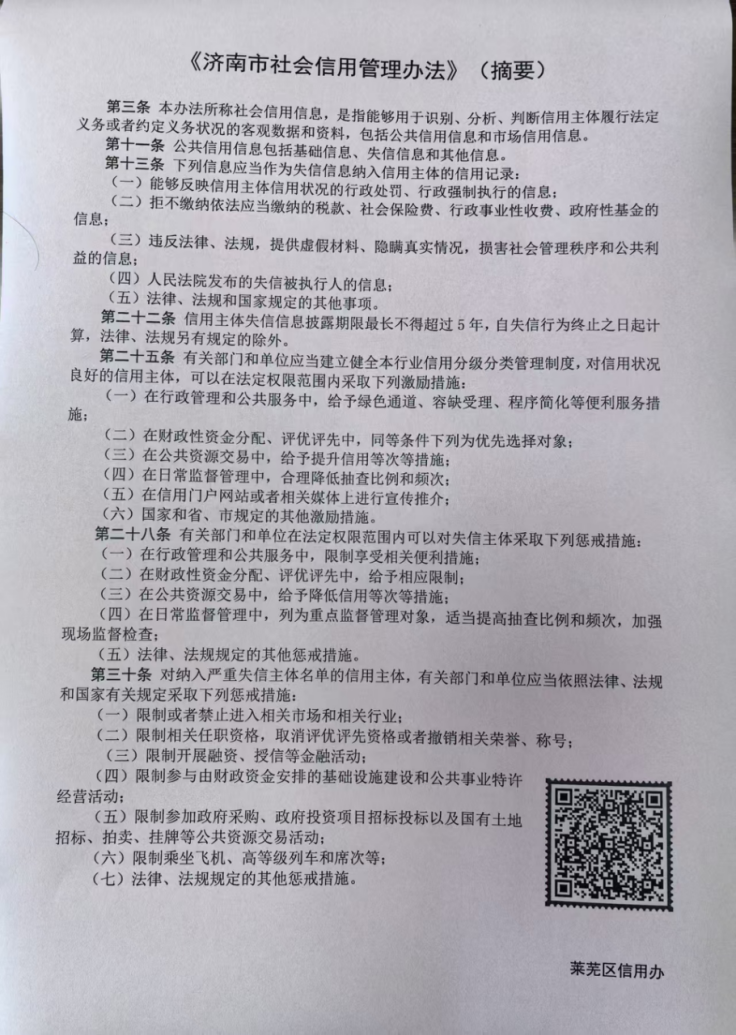 “弘扬诚信文化 推进诚信建设”宣传教育活动,主要围绕两个方面展开:一是开展诚信宣传教育活动。由和庄镇党委书记为机关干部深入解读《济南市社会信用管理办法》等政策法规,通过实际案例分析失信行为带来的严重后果以及诚信在优化营商环境、提升政府公信力方面的关键作用。二是开展诚信讨论活动。围绕社会主义核心价值观,广泛组织开展诚信建设讨论,引导职工树立正确的诚信观,自觉践行“诚实做人、诚信做事”的宗旨。