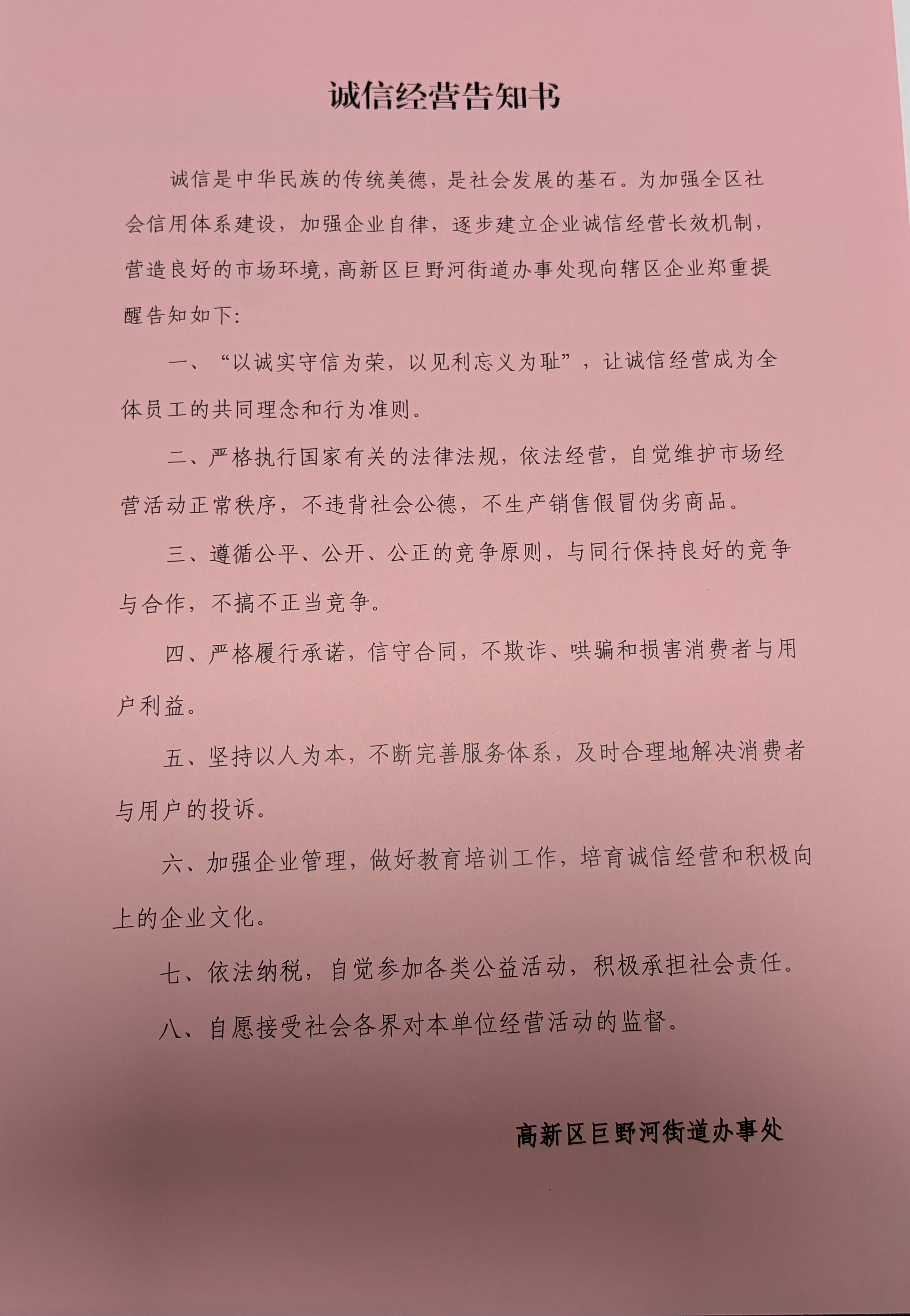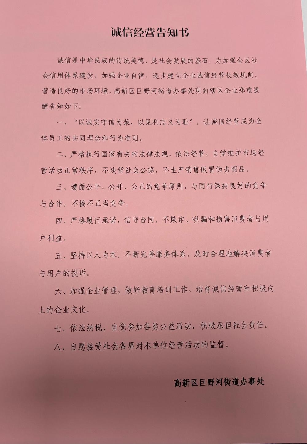 通过此次宣传活动引导企业自律,营造良好的市场环境,为构建诚信和谐社会发挥了积极作用。下一步,高新区巨野河街道将持续做好诚信宣传活动。